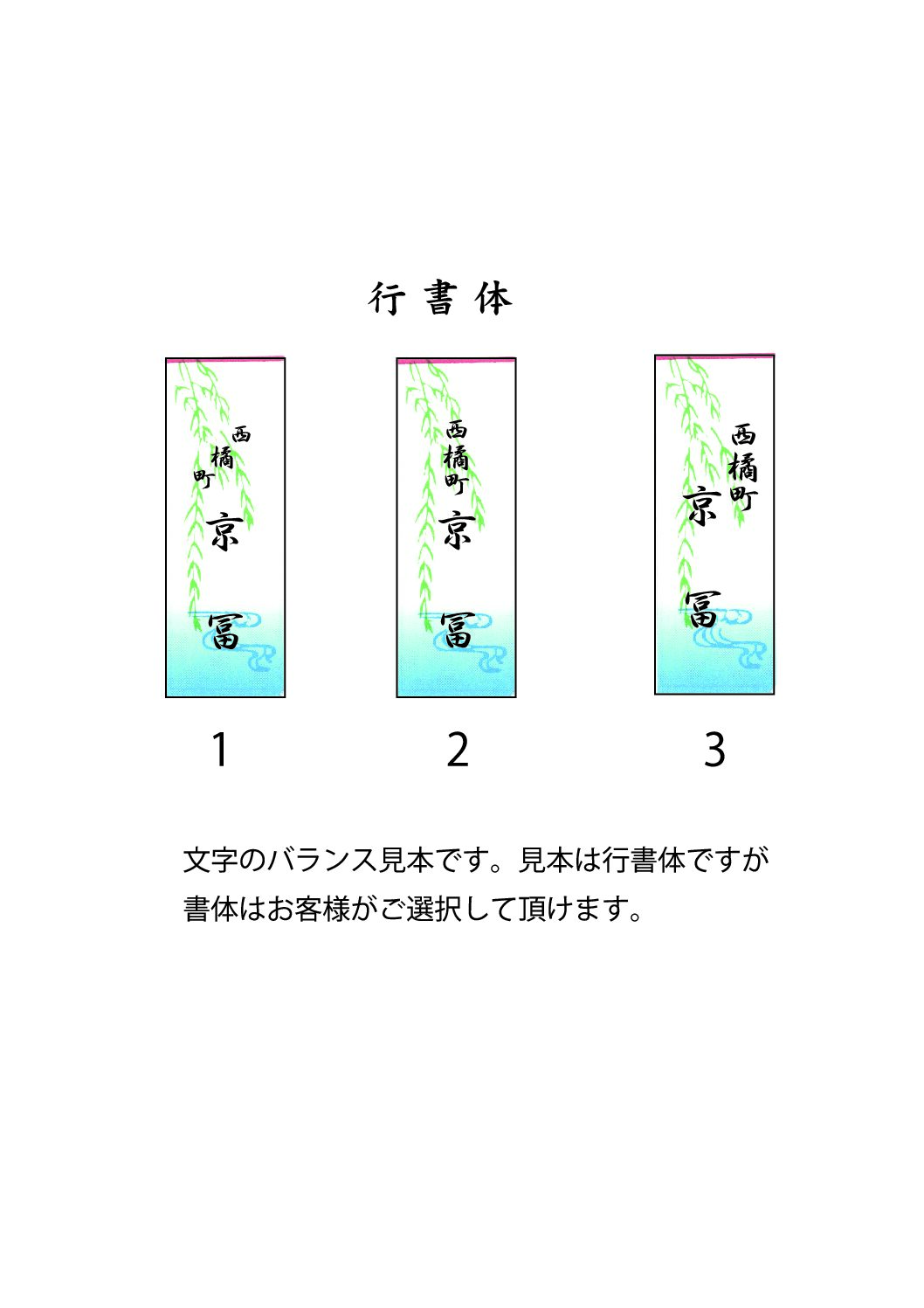 最新情報, Topics 文字のバランス見本です。 2026年4月12日 京冨 最近お客様から、「花名刺・花名刺シールに地名や屋号を入れられないか?」と言うお問い合わせをよく頂きます。参考までに、文字のバランスサンプルをアップさせて頂きます。その他にも何かご希望等がございましたら、何なりとお問い合わせください。 ご確認はご注文頂いた後、イメージ画像(校正)をお送りさせて頂きますので、そちらをご覧いただき、修正・訂正等がございましたらご対応させて頂きます。
